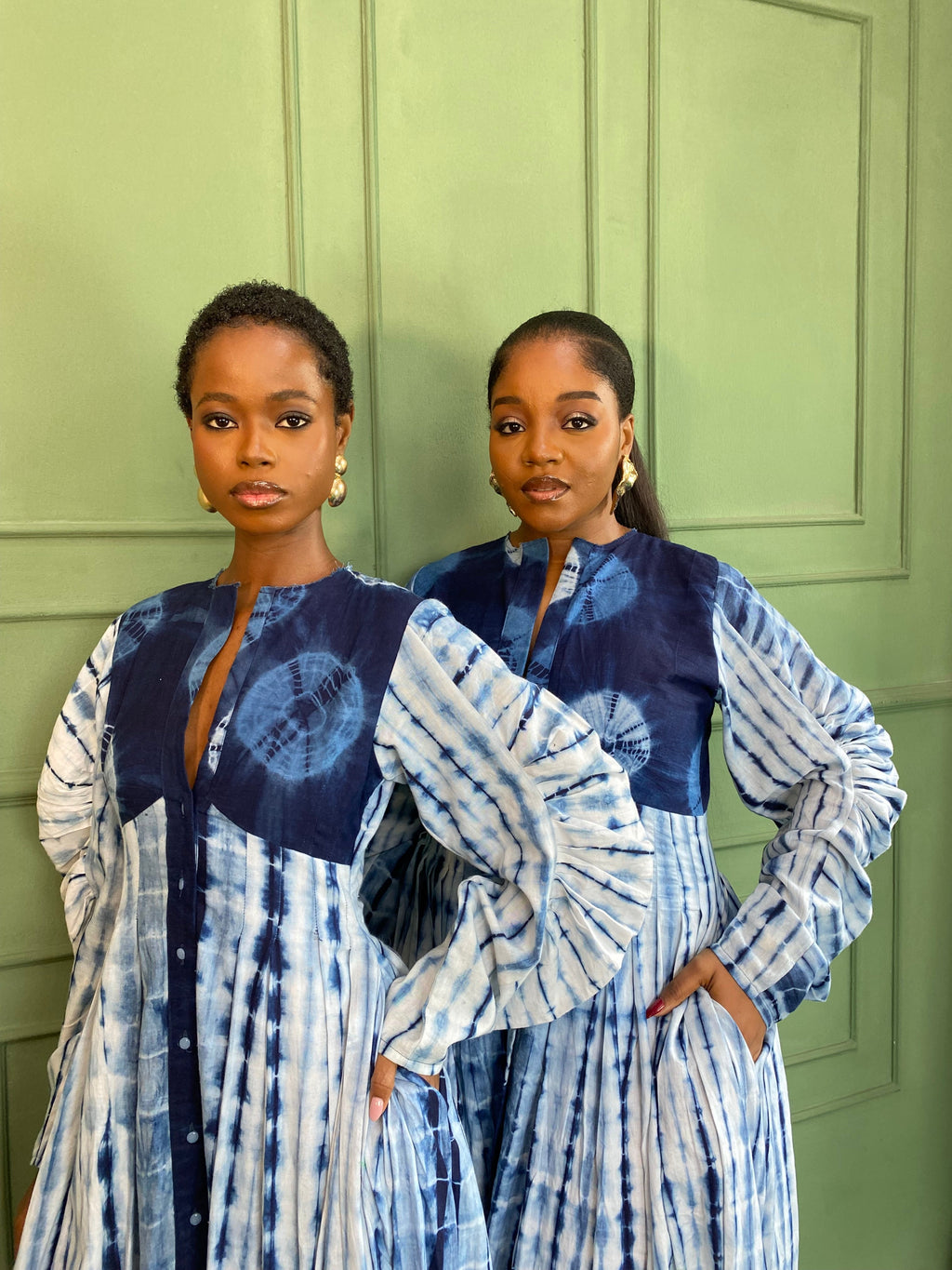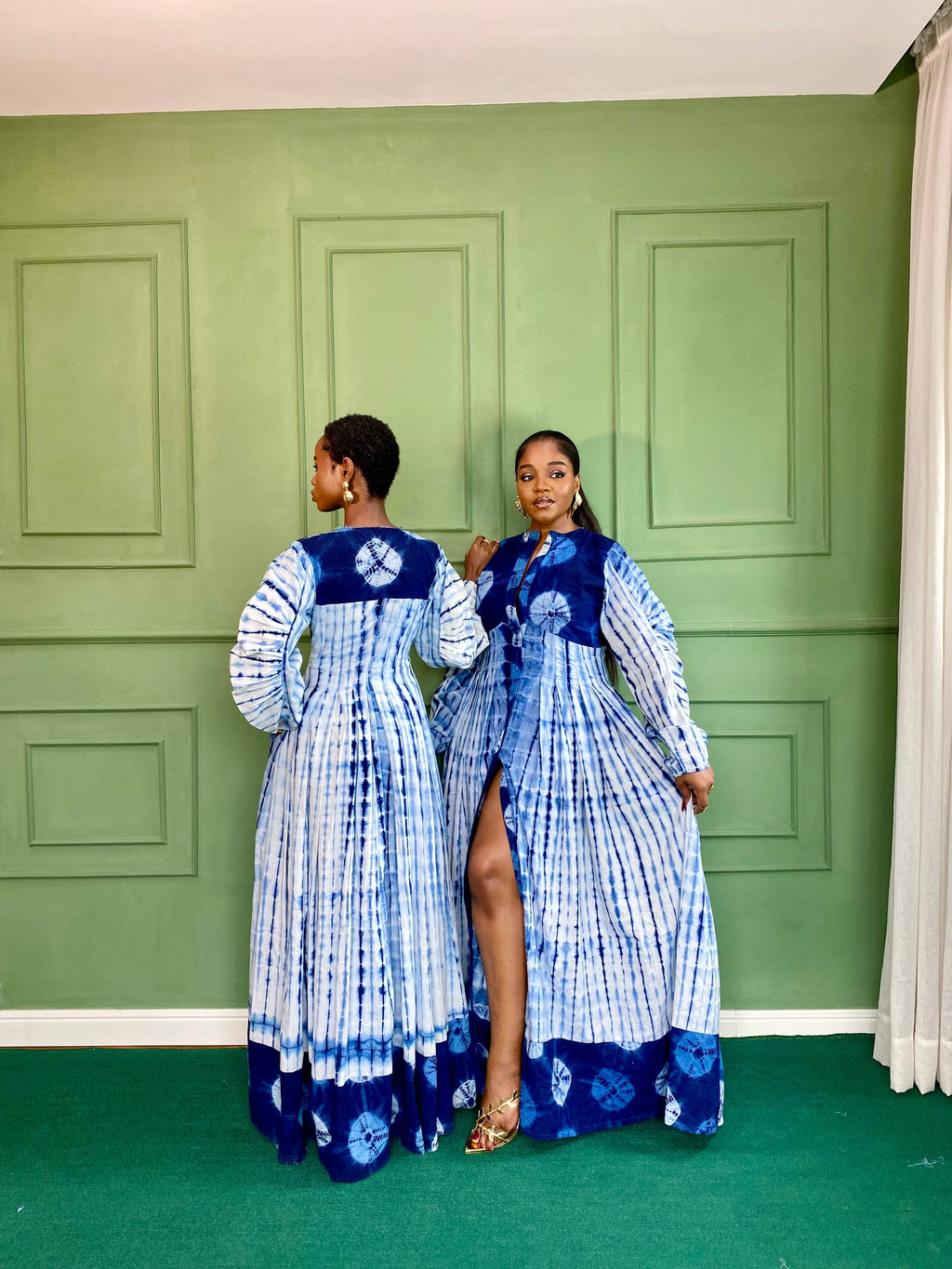 Crafted from breathable, lightweight fabric in a striking indigo tie-dye, the Nina Maxi Dress is designed to glide effortlessly with every step. The tailored bodice and button-down front create a defined silhouette, while the high slit adds a modern, feminine edge. Finished with soft, billowed sleeves and subtle structure through the waist, Nina blends relaxed ease with refined elegance.